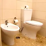 Das Badezimmer verfügt über ein Bidet und eine Badewanne sowie über ein Haartrockner und Badelaken.